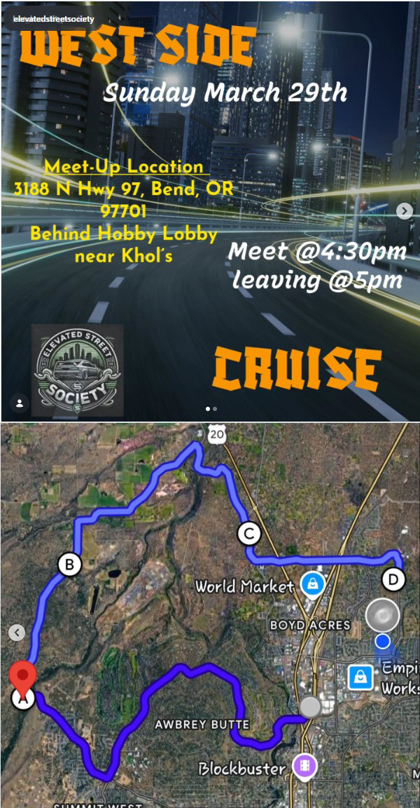Submit any car enthusiast event in Central Oregon to our site for free. We add it to our calendar and post it to our social media pages.