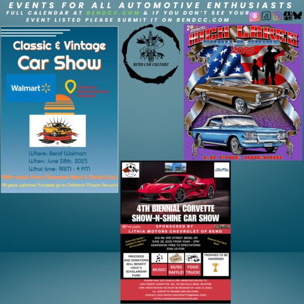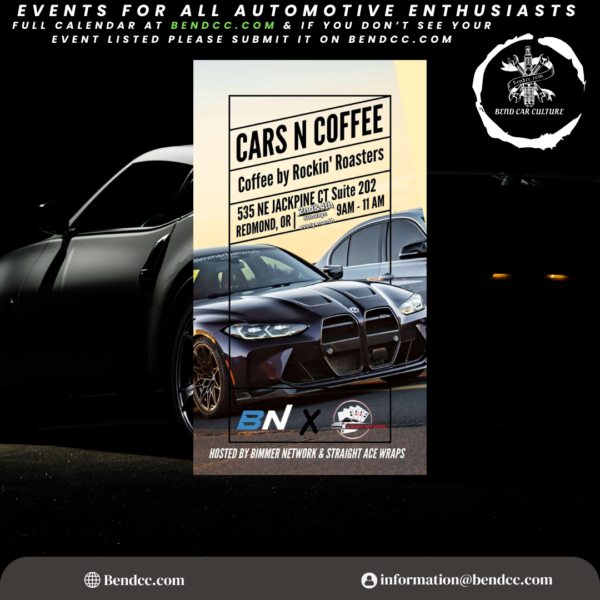 July 27th - Central Oregon Cars N Coffee 9:00am Presented by BimmerNetwork & Straight ace wraps! Car Shows Coming UP 41st Annual Oregon High Desert Swap Meet 9/6/25 Glory Daze Car Show 9/13/25 Anything with Wheels Car Show 9/20/25 If you don’t see your event listed please submit it on...