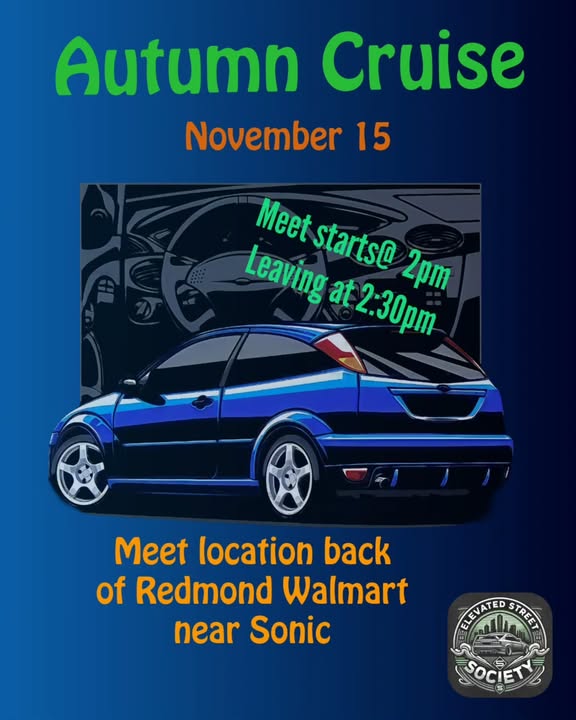 Autumn Cruise November 15th Meet starts at 2:00pm and leaving at Noon. Meet location back of Redmond Walmart near Sonic