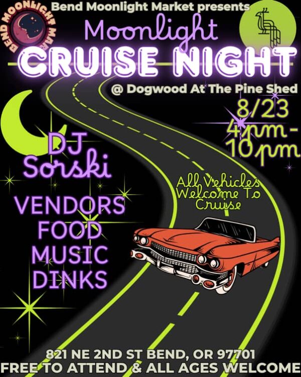 Moonlight Cruise Night @ Dogwood At The Pine Shed 8/23/25 DJ Sorski Food Vendors Music Drinks Free to attend & All ages welcome